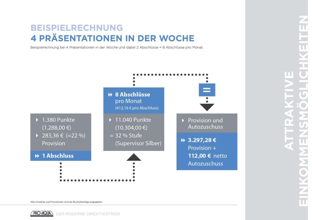 Mit Pro-Aqua bestimmen Sie Ihr Einkommen selbst. Ihre Einsatzbereitschaft und Ihre Strategien wirken sich direkt auf Ihren Verdienst aus. Eine transparente und faire Vergütungsstruktur sowie attraktive Provisionen zwischen 20 und 50 % belohnen Ihren Einsatz und bieten ein enormes Potenzial.